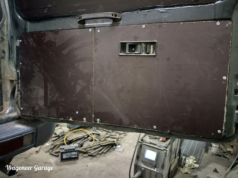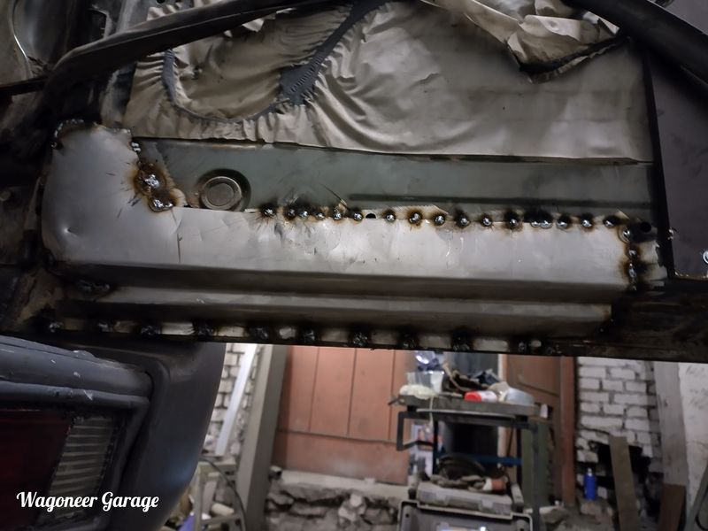 Ja Galloperil siis ka uus paak all. Nagu arvata oli ei õnnestunud ühtegi kinnituspolti tervelt kätte saada ja asemele leitud paagil olid samuti kõik tasemeanduri ja kütusevõtturi poldid puruks. Sai leiutatud natuke ja uued poldid keevitatud. Ja kuna uus paak pärines bensu Pajero alt,siis olid ka paagi esimesed kinnituskronsad vähe teise asetusega. Aga rellakas ja keevitus jälle abiks. Aega läks,aga asja sai. Ette said ka uued amordid alla kuna juhipoolne oli pehme ja mõlemal olid puksid suht räbalad. Loomulikult ei tulnud lahti ka õõtshoova küljes olevad amordi alumise kinnituse poldid vaid läksid nagu ikka pooleks. Nu sai ka need asendatud. Siis sai tagaluugi alumine nurk ka vähe viisakamaks tehtud ning vineer peale pandud.