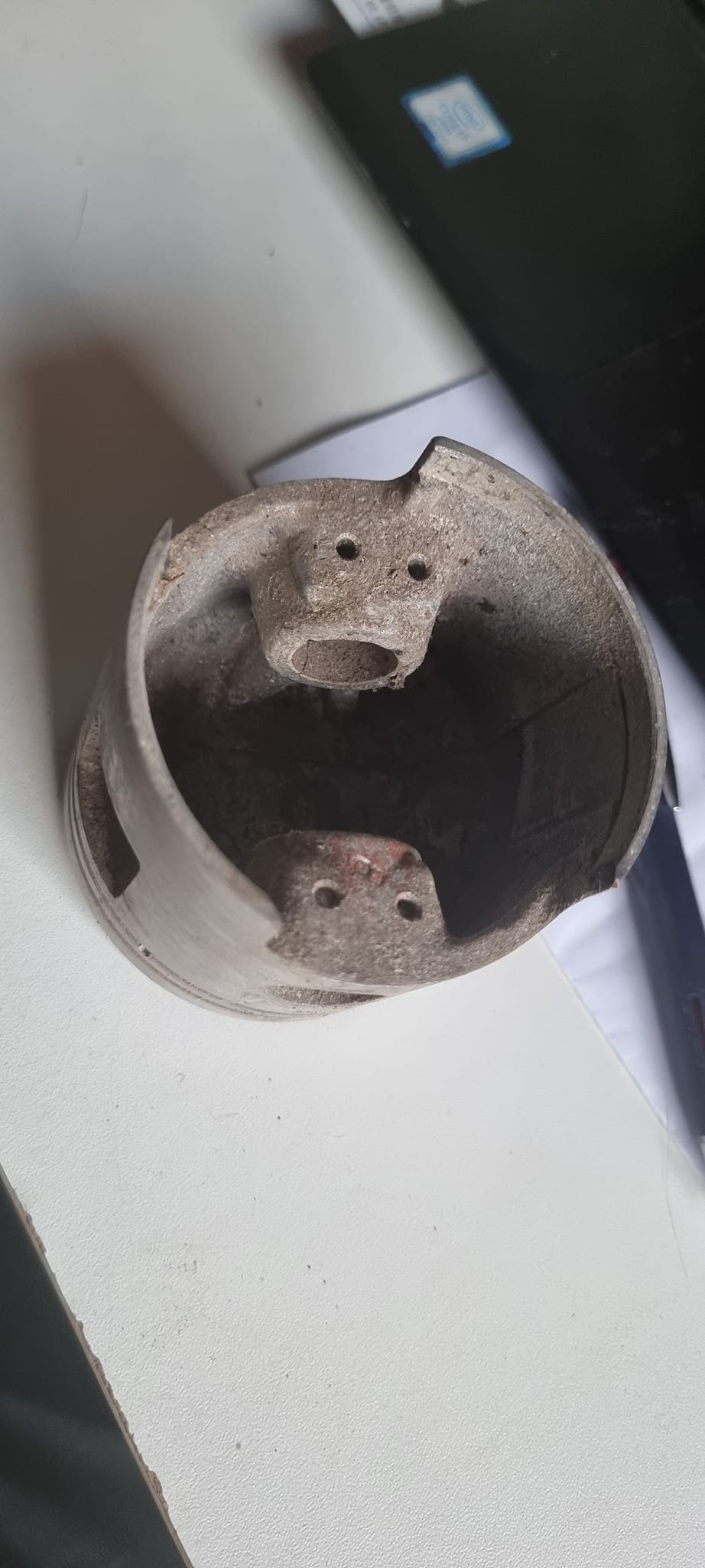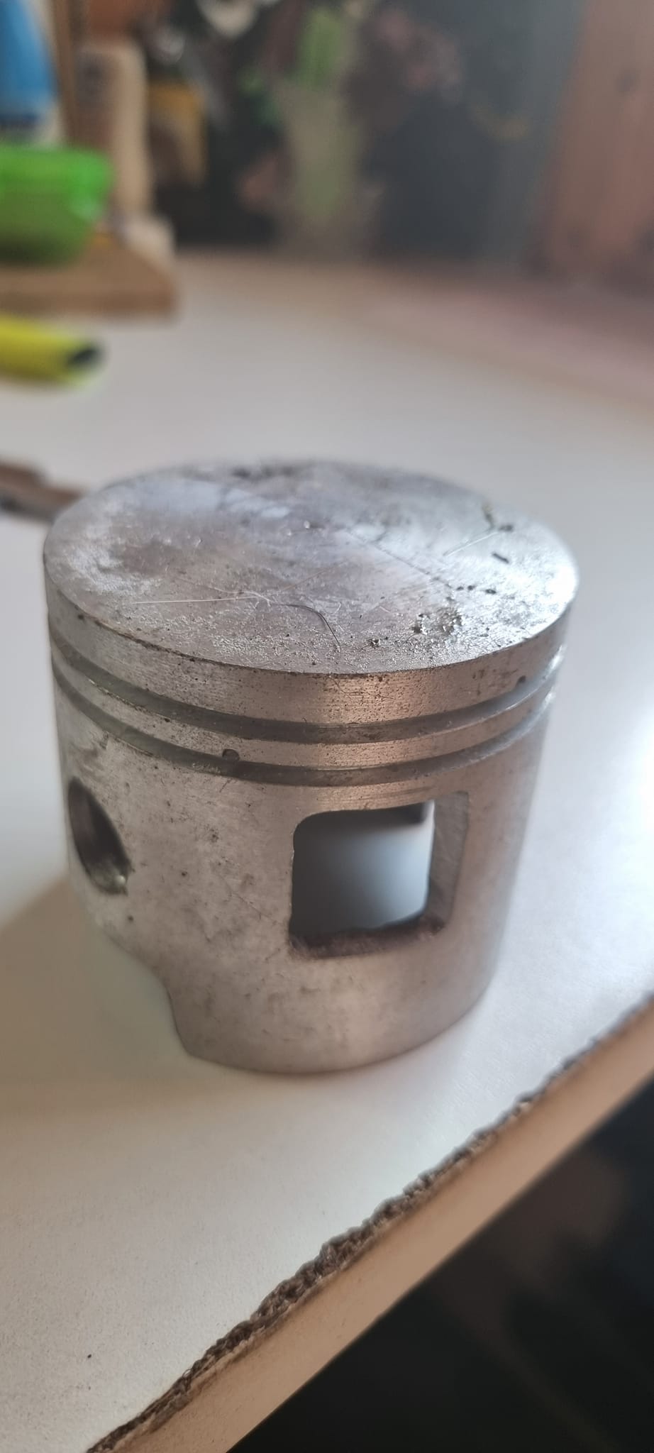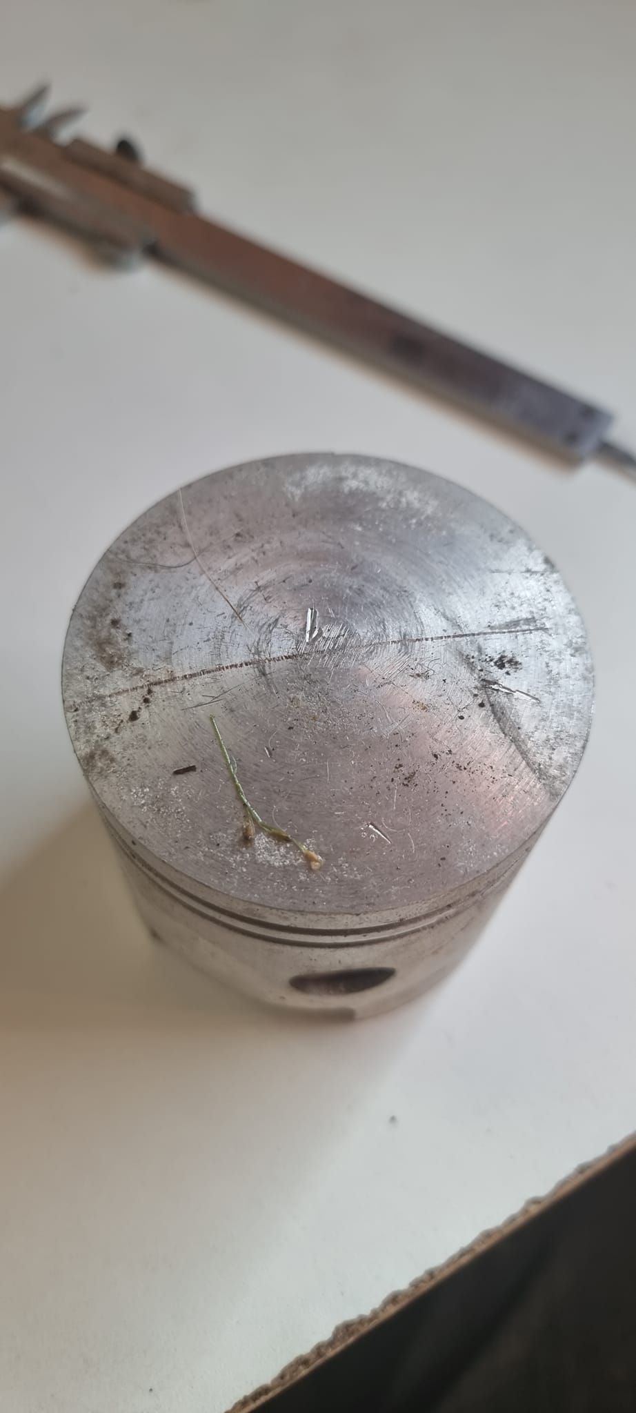 Ühe garaaži koristamise raames ilmusid välja piltidel olevad kolvid. Uued, aga seisnud kaua riiulil. Näib, et mõeldud kahetaktilisele mootorile.