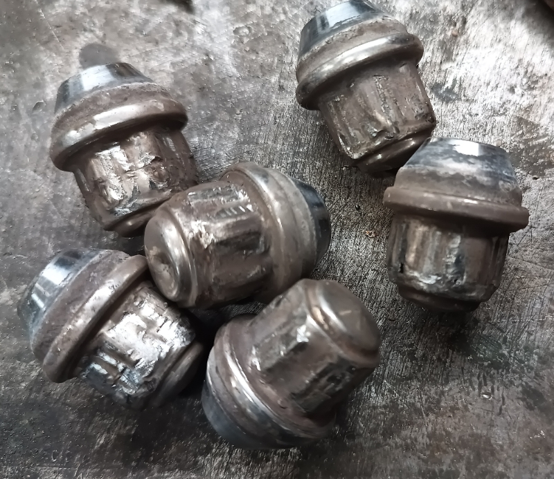 Ühe ratta küljest võetud mutrid peale lahtikeeramisega seotud manipulatsioone: