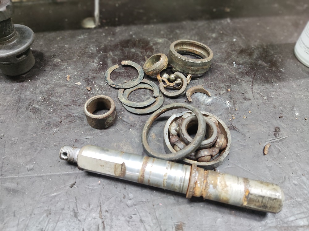 Kodukoha poest sain ka laagrite remontkomplekti koos uue völlitihendiga. Hiljem möötes sain teada, et laagrid on diameetritelt nagu 6202 ja 6303 ... aga paksemad. Pikema distantspuksiga laagrite vahele oleks saanud ka tänapäevalaagreid kasutada.