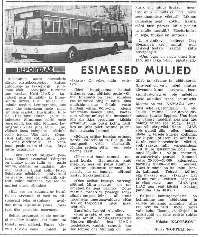 Küll oli uhke pilt kui Rakvere uued kollased Ikarus bussid sõitsid Rakvere-Kiviõli liinil neist Liaz-idest vaid mühinal mööda.