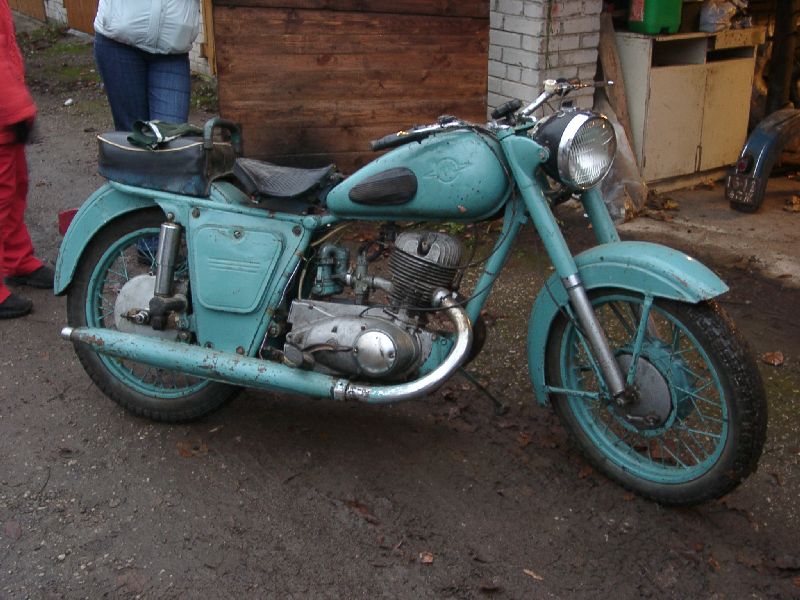 Kuna üks asi viib teiseni, siis nii juhtus ka minuga ja punnvõrri taastamine pani mõtted kripeldama vene mootorratta-raua osas. Sai siis veidi maad uuritud vene toodangu suhtes ning saadavate rataste osas. Vene mootorratast pole mul eales varem olnud, põhjusel, et kodus on '78-nda tootmisaasta Jawa 350, modifikatsiooni ei oska öelda (vist 634) ja see pole ka praegu oluline. Igatahes esiisa kunagi tolle koos külgkorviga ostis ja seni alles ning korras. Peale mõningast info kultiveerimist internetis tuvastasin, et väga mõistliku hinna ja küllaltki meeldiva olemusega on isend IŽ-56 esimene põlvkond. Teine apastraat, mis ka tegelikult meeli köitis, on isend nimega IŽ Jupiter, kuid leitud IŽ-56 seisukord oli sedavõrd parem, et otsustasin tolle kasuks, pealegi 1 silinder ja 350 kuupsentimeetrit on ka avastamata maa. Need pillid näevad minu jaoks just sellise vene mootorratta stereotüübina välja – kõik on lihtne nii mootori kui kere osas, üleliigseid tulesid ja vilesid pole ning disainer pole ka suuri prohmakaid teinud. Harmoonia on ilmselt selle asja nimi. Öeldakse, et geniaalsed asjad on lihtsad ja nii see minu jaoks tundub olema selle aparaadi puhul. Ratta soetasin selleks, et suvel hea ilmaga ringi purjetada, veidi matkata ning plaani on pandud ka mõte tungida kitsamatele metsaradadele, et avastada veel nägemata jäänud eesti looduse ilu, mida fotopurki talveks salvestada. Selleks tarbeks peab aga raud saama uued pinnakatted, et meeleliselt oleks mõnus kulgeda.
