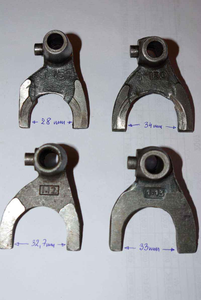 Nimelt aegu tagasi varutud käiguvahetuse kahvlid osutusid valesti valituteks. Originaalid on 1-150 ja 1-151, "uued asendused" 1-12, 1-13. Ju kuuluvad need mõnele uuemale IŽ mootorile. Vanad kahvlid on mõlemalt poolt kulunud, 5mm paksusest mõni kümnendik kuni 1mm. Tea kas selliseid poest ka veel uuena leida võiks.