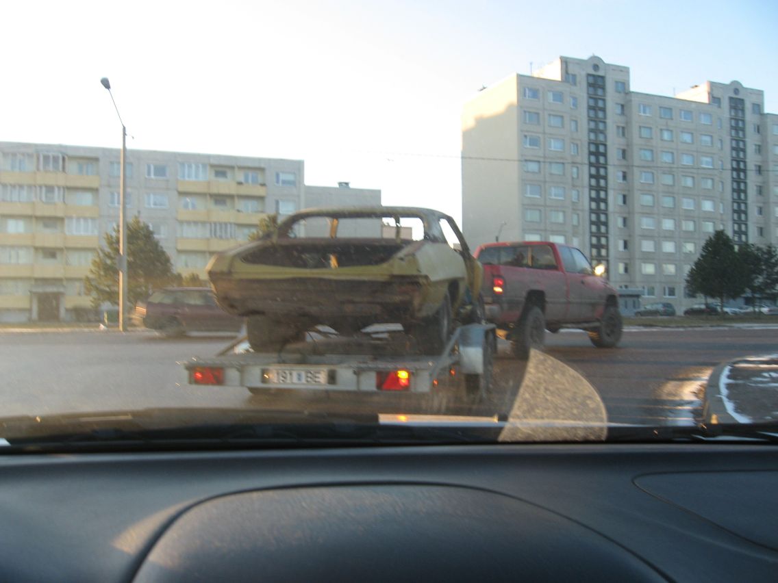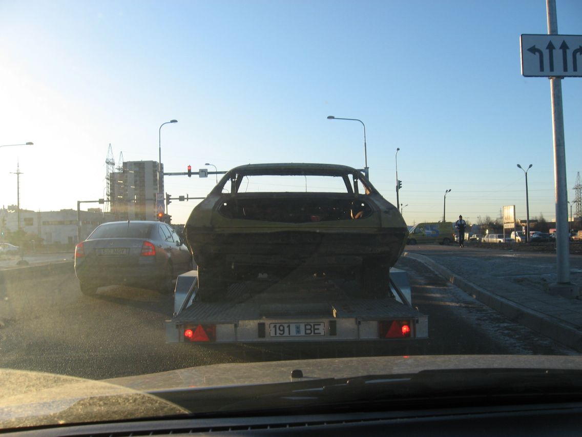 Selline isend täna hommiku mööda Lasnämäge elldatavasti Betooni tänavale liikus. Mina ei osanud küll tuvastada, millega tegu. Alles oli vaid kere ja rattad: uksi, klaase ees ei olnud. Esiots oli koos lanseroonidega maha võetud, et tulemüürist ette oli tühjus. Kas mingi ameerika kupee?..