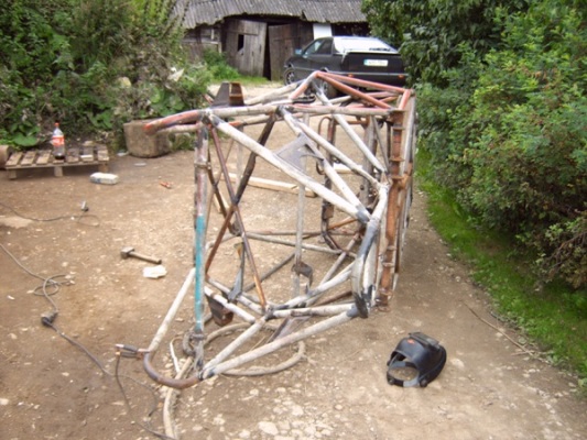 Tükk aega jälle mööda läinud, aga arenenud pole eriti palju. Seda tänu keevitusaparaadi ülesütlemisele. Nüüd aga aparaat korras ja saab jälle edasi teha. Kiskusin raami laiali, et lõpuni keevitada. Panen siis mõned pildid: