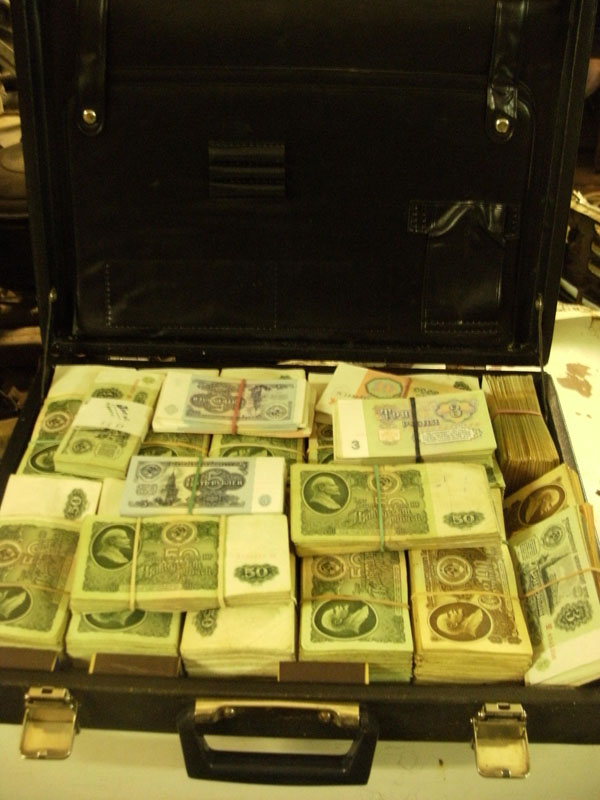 nimelt on olemas nõukogudeaegne diplomaadikohver mis on pilgeni täis vanu rublasid pakkidena. kogusummas üle 300 000 rubla. pakkidena ja sorteerituna väärtuste järgi pakkidesse.