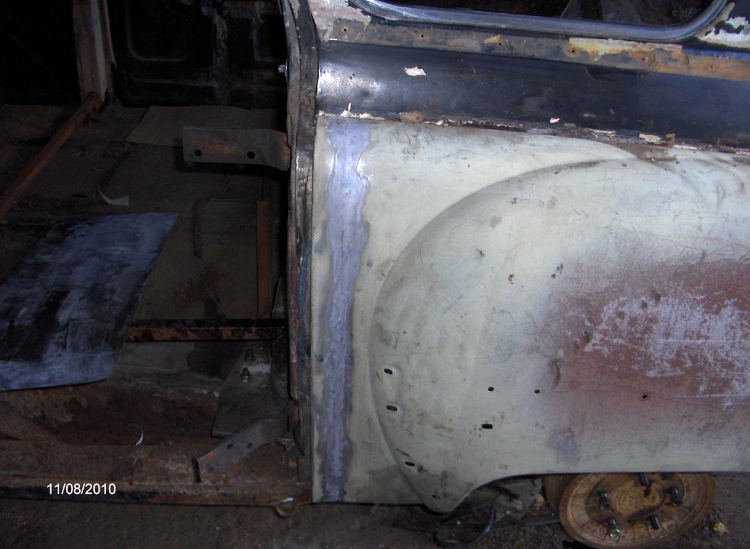 Peale tagumise vasaku poolraami, ratta koopa ja ukseposti taastamist, hakkasime tagumist poritiiba paika sobitama. Siinkohal tänud kaasfoorumlasele Kotermanile, kes mind korraliku tiivaga aitas. Uus tiib küll, aga külge ei sobinud(vähemalt minu autole). Proovisime igast kandist aga suur mis suur. Nii tuligi pikkusest riba vahelt välja võtta ja uuesti kokku keevitada. Aga asja sai: