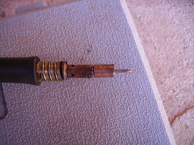Huvi pärast sai proovitud, kuidas see keevitus oma omadustelt ka TIGi jaoks sobib. Kuna TIG käppa ei ole ja niisama huupi proovimiseks ka ei tahtnud osta, siis sai rats tehtud tavalise MIG käpa külge. Lõikasin lihtsalt traadidüüsi lühemaks ja puurisin siis sinna sisse samasuure ava, kui jäme on volframtraat. Et ta seal düüsis püsiks, siis sai natuke pigistatud seda düüsi kokkupoole ja nüüd siis kõvemini lükates saab volframelektroodi väljapoole lükata. Täies originaal pikkuses ta sinna torru ära ei mahtunud, seega tuli pooleks lõigata. Traadikõri võtsin üldse välja.
