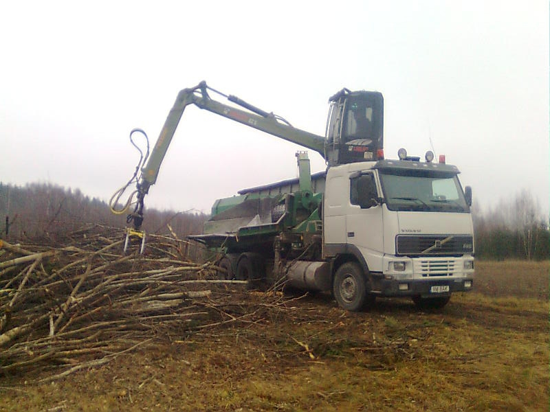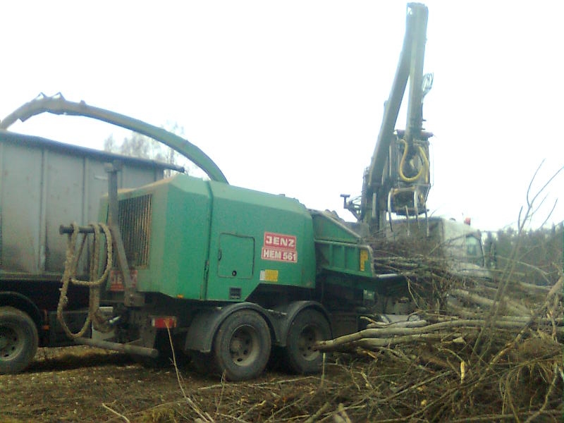 Mobiilne puiduhakkur JENZ HEM-561 töötamas võsapurustamisel .