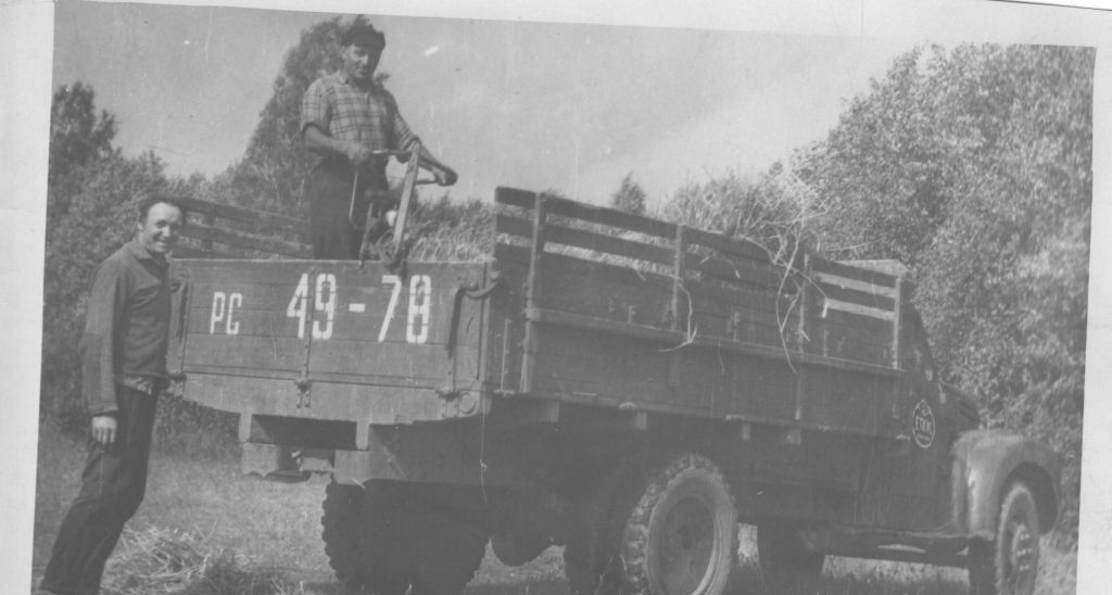 Autojuht on kastis ja võtab mootorsaagi Družba vastu.
