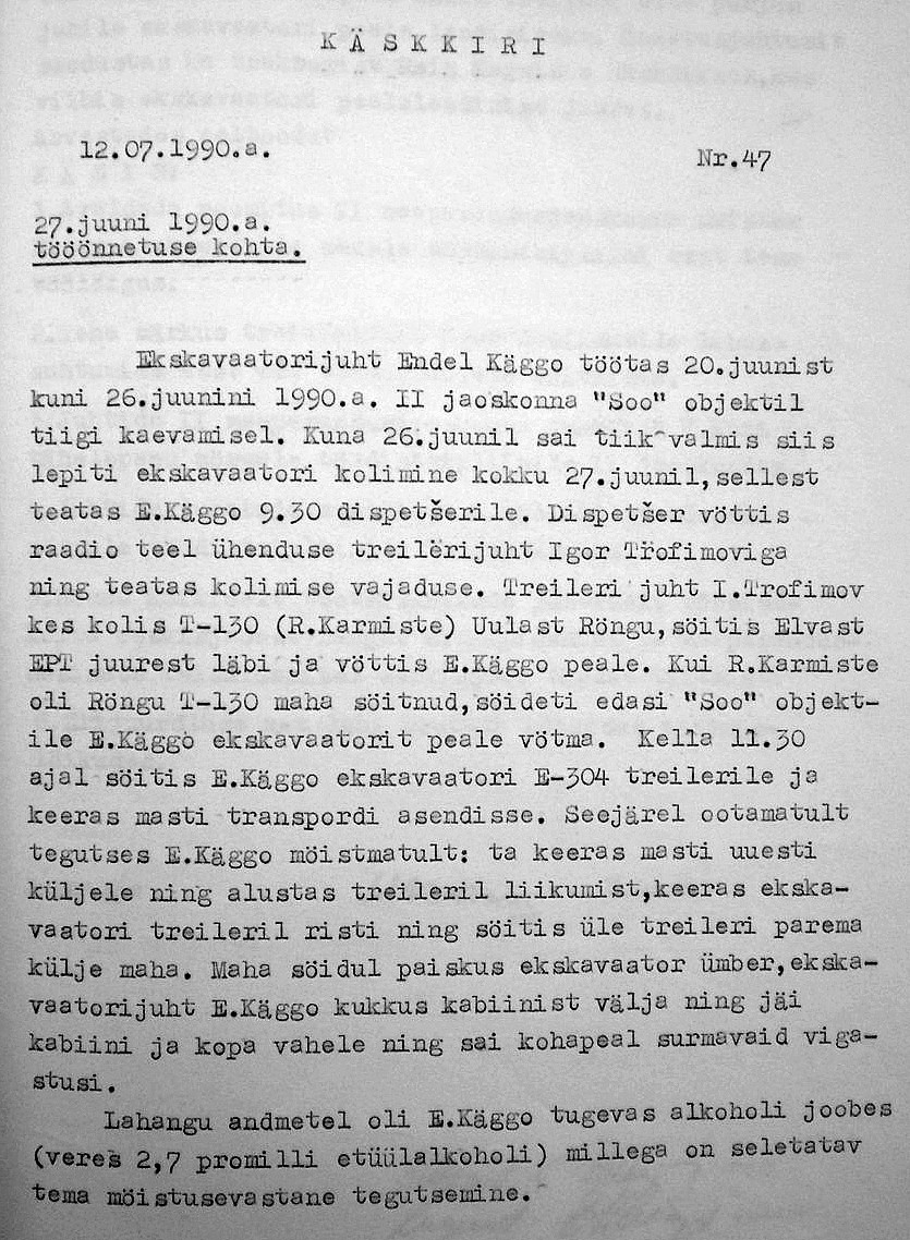Üks traagilise lõpuga lugu nõukaaja lõpust siis Elva EPTst käskkirja näol.