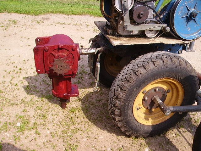 Leidsin rauakolast sellise reduktori nagu all pildil. Ajutiselt sai üks torujupp reduktori külge kinnitatud ja ette sobitatud masinale, et näha milline asi tuleks. Sobiks nagu rusikas silmaauku. Tera hakkab pöörlema õiget pidi ja reduktori veetav võll ka täpselt õigel pool. Hammasratta asemele rihmaratas, rihm peale ja ongi kõik. Kõige positiivsem veel see, et asi on