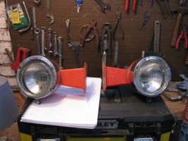 Kuna mina ei hakka oma pisikest tööhobust taastama originaalilähedaseks vaid rõhun rohkem mitmekesisusele, siis on pakkuda esituled. Ühel on klaasil (allservas) väikene mõra, teisel klaasivõru natuke muljutud. on ka värvikriimustusi ja mulle tundub et pirnipesadega ei ole ka kõik päris 100% õige. Äkki on kellelgi soovi.