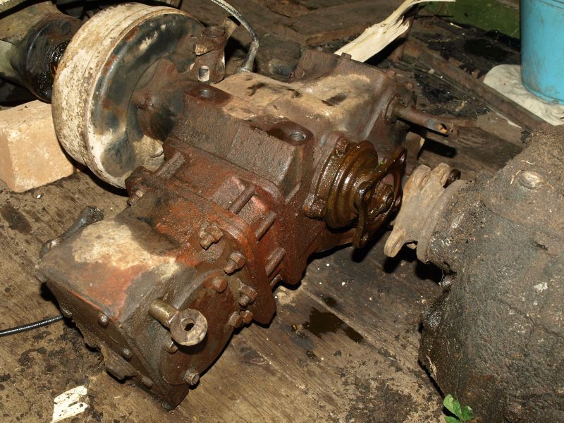 ja veel üks kast, millel jõu väljavõte küljes oleks muudaks masina jällegi väga aeglaseks ja pikaks. Tagasilla mootoriga aga ei taha ma loobuda vahekastist kuna muidu olekls vedu arvatavasti liiga nõrk ja ebaühtlane. Lisan veel pilte kus on vahekast näha, ehk keegi teadjamees oskab selle jõuväljavõtu kohta midagi tarka öelda, et kas saab seda sisse lülitada kui vahekast neutraalis on ? Kui saab, siis tuleb seda remontima hakata. Esisillale minev kardaaniots jääb praeguse seisuga üldse tühjaks ...