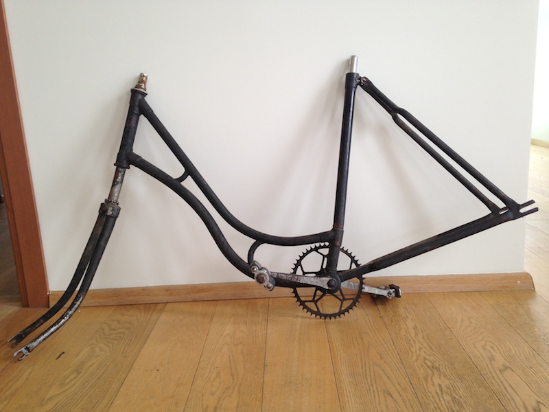 Raami kahe kõvera toru vahel asuva kolme ovaali proportsioonide järgi arvasin algul, et tegu on ETK Eteka või Saare Luxiga -- kuid nende jaoks on seerianumber liiga suur. Lisaks näevad kunagise embleemi aluse püsttoru muhvid neist teistmoodi välja, meenutades pigem vana Göricket või hoopiski 50ndate Harkovit. Samas ei klapi nendega muud asjad.