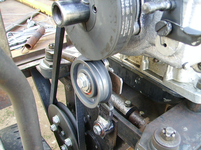 Järgmiseks sai tehtud rihmapinguti. Pinguti sai liikuma pandud laagritele, siis ei hakka nii kergesti puksi ära kuludes loksuma. Samuti remont lihtne, vaja vaid laagrid ära vahetada. Pingutusratas ise VW/Audi 1,8 mootorilt pärit.