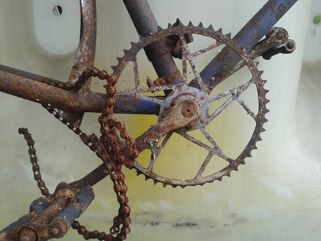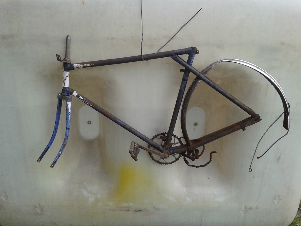 Vanarauast välja ilmunud. Esmapilgul on näha et raami alusvärv on traditsiooniline must. Samas on sinisel pinnakihil korralik heledam triibutus ning vesipildidki on valgel pinnakihil.