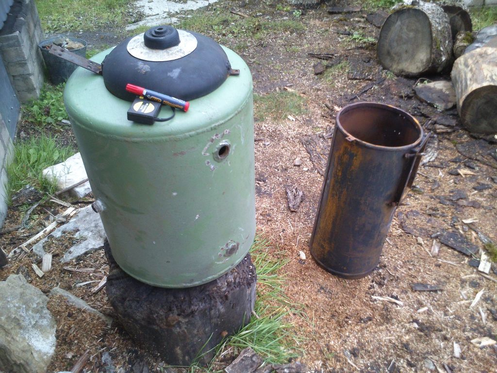 Suure remondi ajal 3a tagasi vahetasin katla suurema vastu ja paigutasin selle teisiti kui enne. Katla ja korstna vahele tegin suitsulõõri ise vanast gaasiballoonist. Tegin ka luugi, millest tahma rookida. Juba siis oli mõte vareste lennuruumi soojendav energia kinni püüda. Pool sellest kavatsusest on nüüd täidetud. Leidsin vana veepaagi, mis mõõdu poolest ideaalselt sobis ja tegin sellest suitsulõõrile väliskesta.