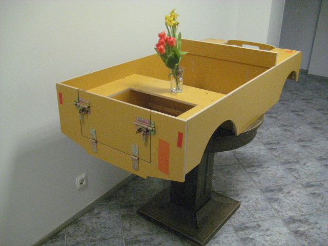 Välja lõigatud Klavises 12mm veekindlast vineerist. Kokku on pandud liimi ja kruvidega.