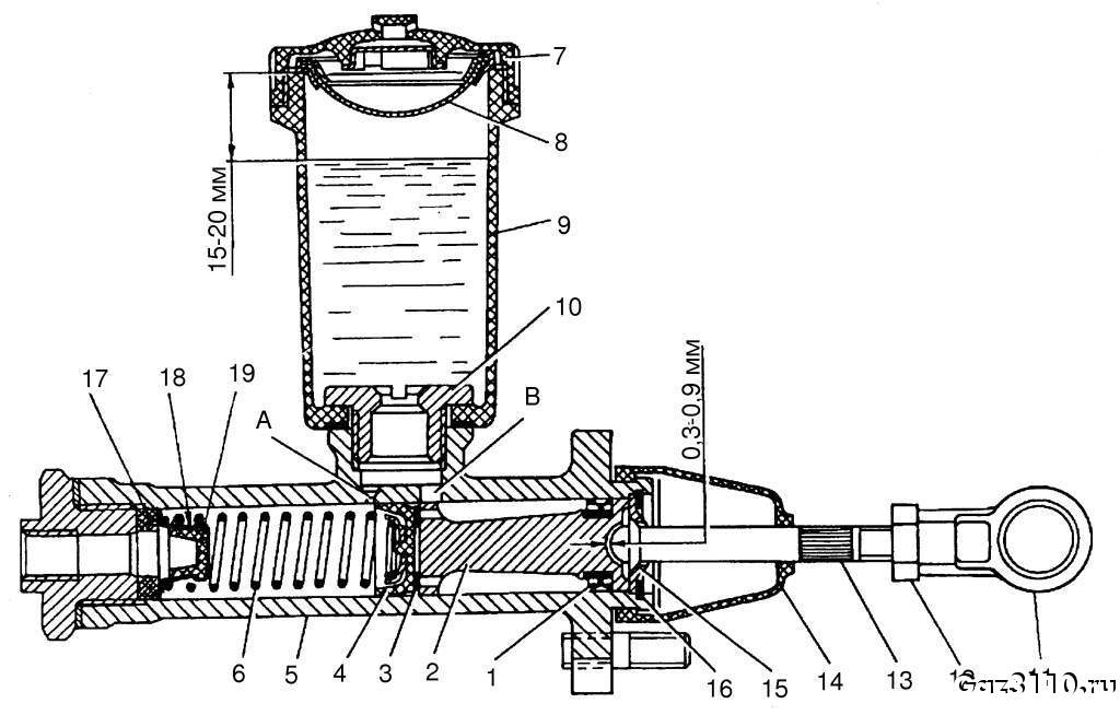 Sapakal polegi neid, on moskvitsil ja mingitel sapakatel, mis juba uuemad. Selle moskvitsi oma peal on näidatud kolvi ja hoova vaheks 0,3 - 0,9 mm. A ja B on augud, mille kaudu liigub õli paagist ja paaki tagasi. Kui mansett suleb ava A, siis ei õnnestu õhutamine. Pilt mingi sõjaväe LUAZ-i ja mosu silindrist. Venes kasutati ühe margi osi teiste markide peal ja mõnikord veidi täiustati või lihtsustati vastavalt vajadusele ja saadavusele. Oli ju plaanimajandus ja tihti defitsiit osadega.