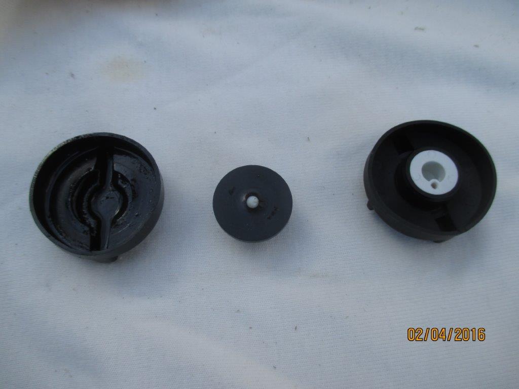 Vasakul osastatud vana kork, paremal Onu Sammi kingitus. Korgi väljamõtlejal võisid olla ülihead kavatsused aga välja tuli nagu tavaliselt. Igaljuhul, ei suutnud mina sealt tuult läbi ajada isegi siis kui tihendasin suurima tuulekao ava oma keres pöidlaga. Kompressori abiga see küll lõpuks õnnestus. Modisin vana korki pisut ja panin katseks peale. Saab näha kas aitab.