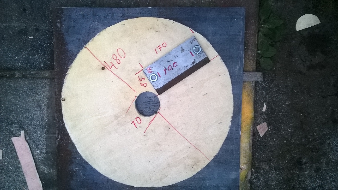 Sai kiiresti vineerist lõigatud üks ketas, tuleb hakata terasi sinna peale sobitama, kui tundub, et asi paigas, mõõdud ära võtta ja üks eskiis plasmalõikajate jaoks kritseldada. Ilmselge see, et ketta 10 mm paksust vähe, 20 mm oleks paras. Sai nüsitud ka üks torujupp DN 500 sellest siis lõigata välja hakkuri korpus, 200 mm korpuse paksuseks peaks piisama. Korra välgatas isegi selline totakas mõte, miks ei võiks hakkuri korpus kandiline olla..... hakke väljapuhumine jääb veidi nõrgemaks aga ons siis vaja seda 10 m kaugusele lennutada, praegu tuleb siiski ümar