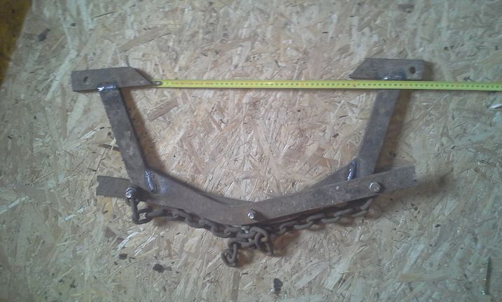 Haaratsi teema sai lõpu sellega, et leidsin oma vanaraua hunnikust kõvera raudlati mis kunagi on olnud vist nn terasest karuäkke osa ja sobis ilusti haaratsi materjaliks. 40x12mm siis ristlõige ja poldid 12mm peaksid pidama.