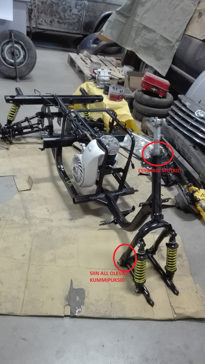 Komplekteerimine käib ja järjest ilmneb puuduolevaid asju. Kuhugi on jalutama läinud esihargi mutrid (vt pilt) ja ees õõtsa sees on ka augud kus ilmselgelt on mingid puksid olnud. Kui kellelgi on pakkuda siis ootan infi.