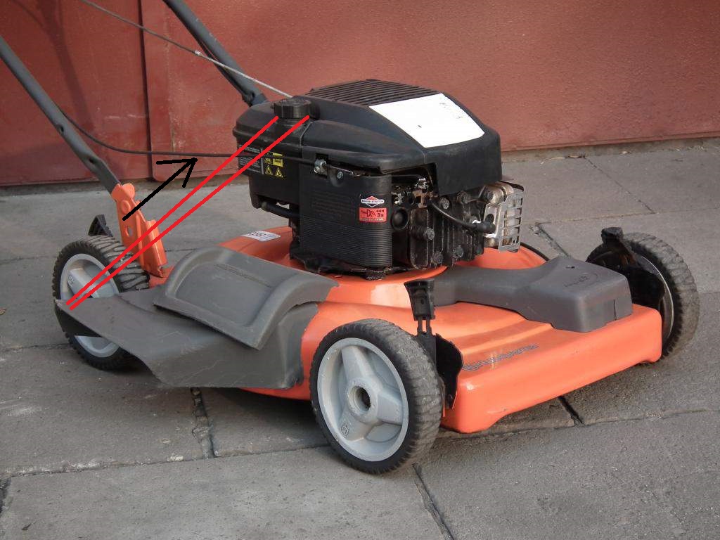 Kuna mina kaks korda niita ei viitsi, siis mul aitas kolu ja mootori vahele traadi lisamine (täpsemalt teise otsa kinntasin bensuvalamise toru ümber) , millest sai "kolu" kõrgemale timmida võrreldes algseadega. Lisan ka enda masina puhul tehtud ja töötava "skeemi":