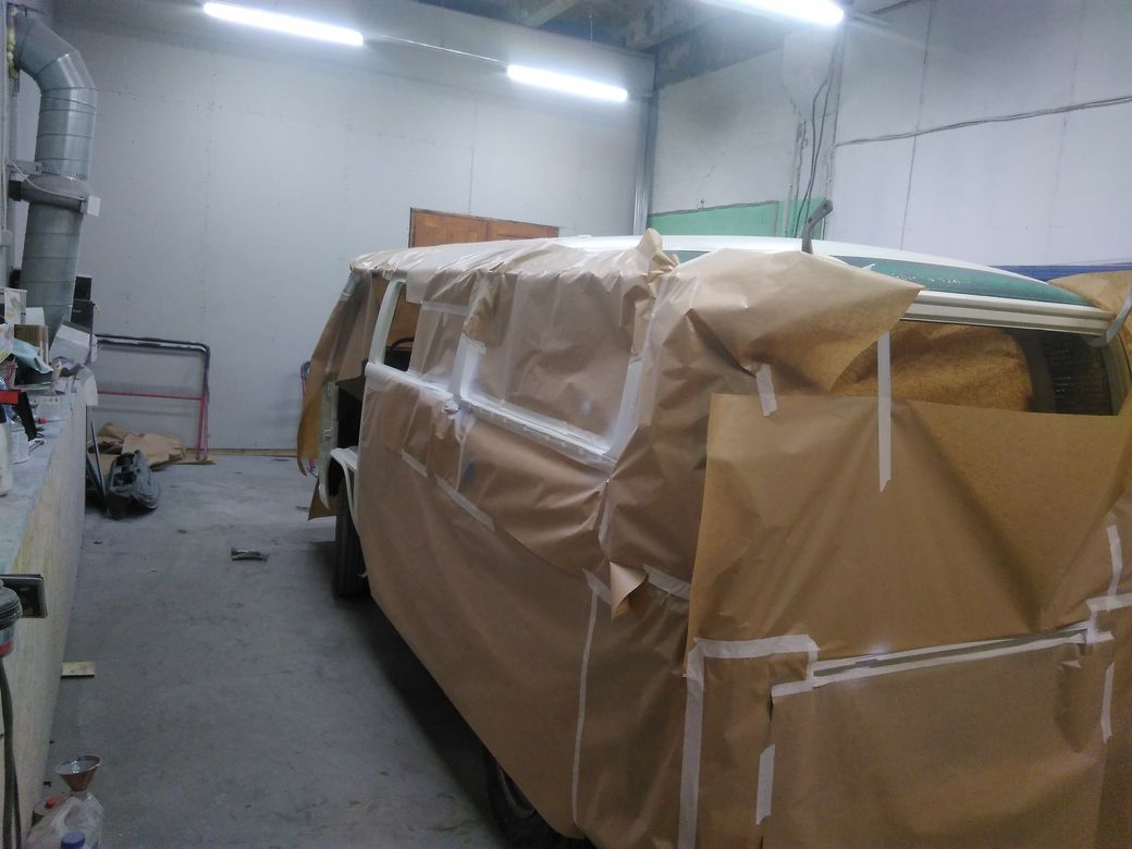 Ehk buss sai osaliselt kinni kaetud ja pahteldatud ning nühitud. Seejärel pidi juba natuke korralikumalt kinni katma,et peale lasta täitekrunt.