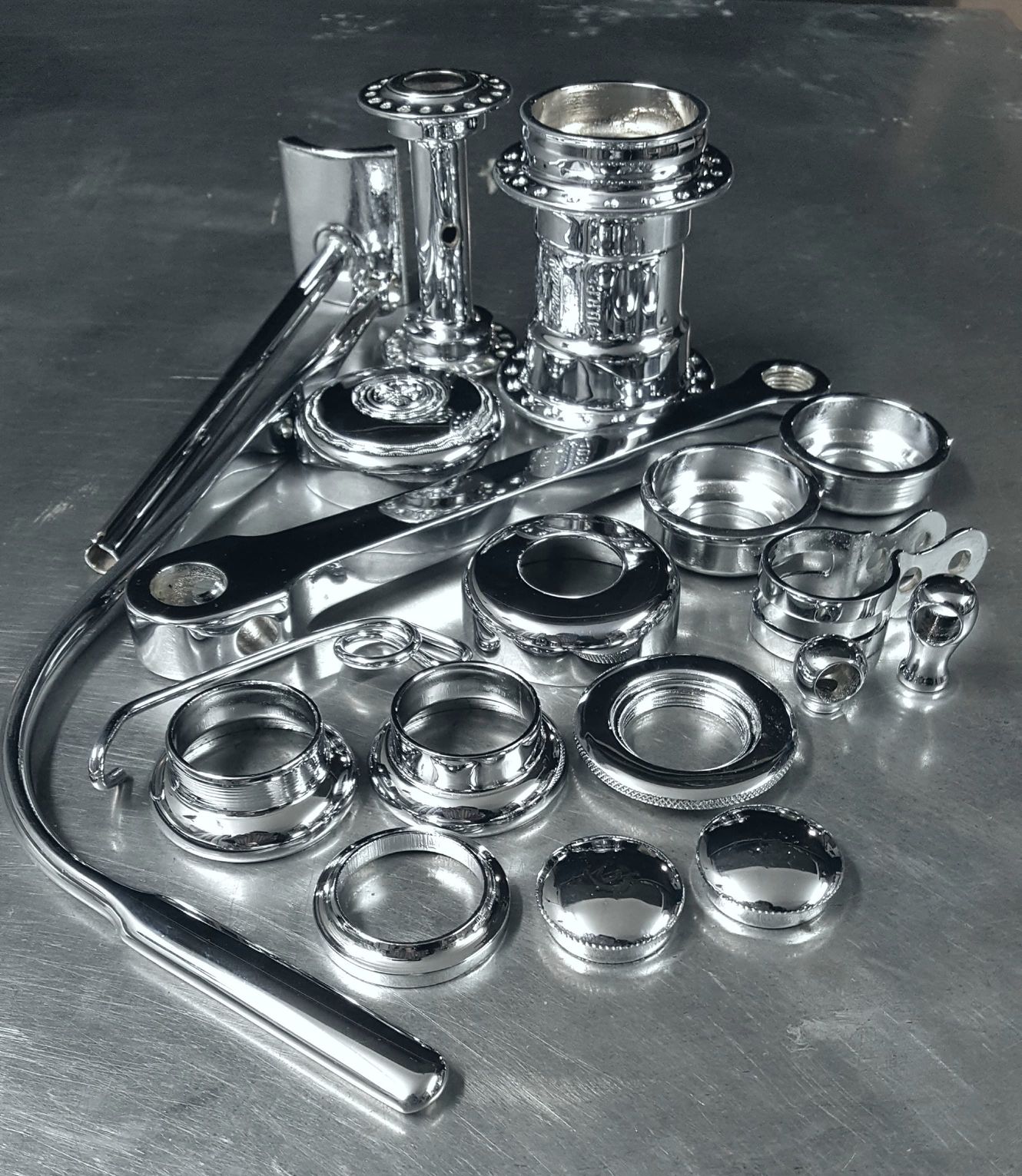 . Edasi rändasid asjad juba kroomimeistri kätte. Ka sinna sai poiss saadetud nii öelda õpipoisiks pooleks päevaks. Sai aru kui raske on roostest puretud asja kroomiks ette valmistada. Nüüd saabusid juba esimesed pisemad osad kroomist tagasi. Ise veel käes pole hoidnud,aga krt,pilt on vägev. Saksamaalt said soetatud ka sobilikud sadulavedrud ning esiporilaua kaunistus. Piltidel paistis sadula alusraam koos vedrudega täpselt selline kui meil vaja,aga kui kohale jõudis,siis selgus,et vedrude ümber käiv raam on teistsugune. Ehk peab ikka enda roostest puretud jupi elustama. Panen ühe lingi ka kus googelmoogelis näha rohkem pildimaterjali.https://photos.app.goo.gl/NWva5DS7TwRJAjFD6