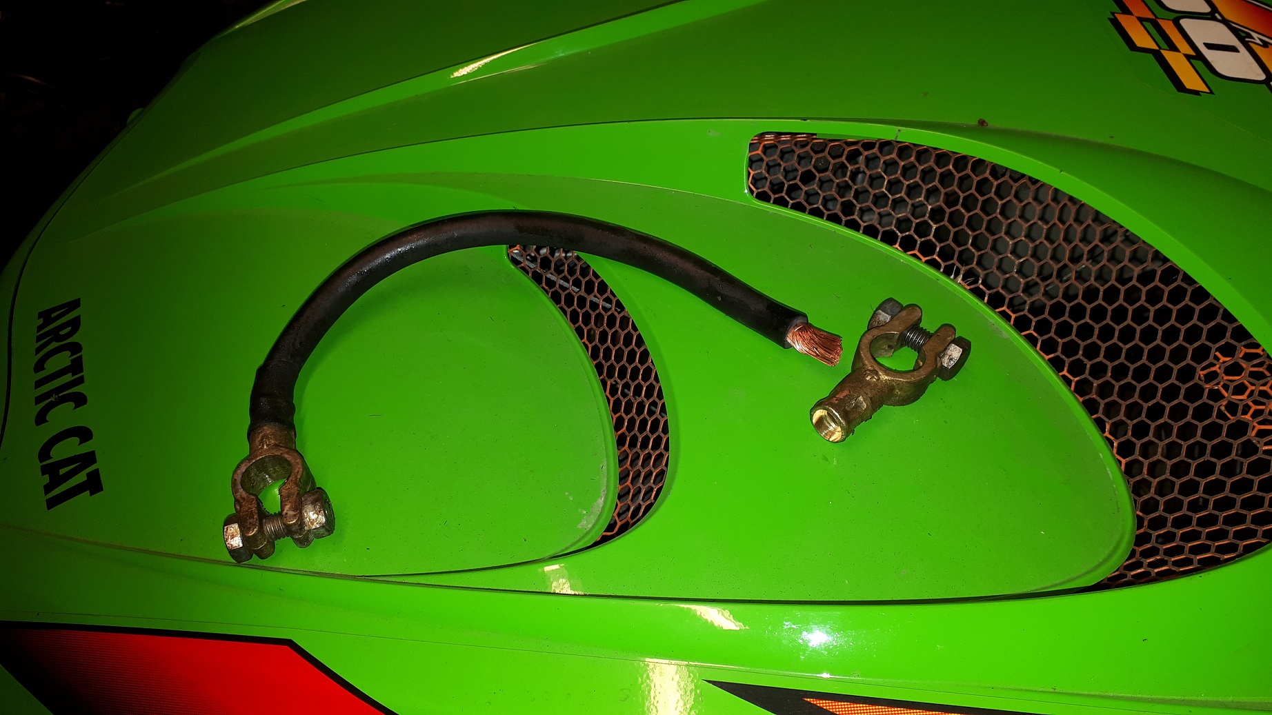 Viimastel sõitudel panin tähele, et laadimine hakkab nõrgaks jääma. Pingutasin natuke gene rihma, kasutu. Võtsin siis väikse remondi ette. Vaja vahetada mootori õli ka. Peale kahenädalat seismist kontrollisin akud üle. Üks käivitusaku on otsad andnud. Vahetasin ära. Murphi seadusele kohaselt oli läbi just tagumine aku. Vaja ikka mõlemad akud välja venitada ja tagasi punnitada. Akude vahejuhet peale pannes tirisin plussklemmi otsast ära. Ju siis oli tehasest halvasti pressitud. Panin teise klemmi ja akud tagasi.
