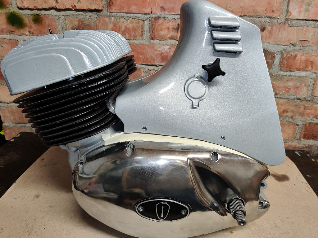 Vahepealsel ajal sai ka järele aidatud karburaatori katted ja need ka juba üle värvitud ning paika sätitud. Paremal kattel tuli eesmine kinnitusava tõsta ca 5mm ülespoole ja sellega ka kogu olukord lahenes. Vana ava täiteks tegin paraja istuga alumiiniumist "needi" ja lõin selle tugevalt sisse ning neetisin kergelt ka otsad üle. Seejärel uus auk õigele kõrgusele ja kinnitustihvt tagasi. Lõpptulemus sai selline: