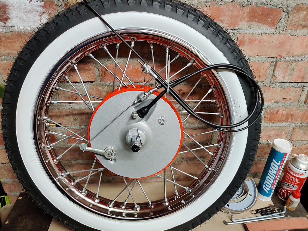Seejärel oli aeg koostama hakata esi- ja tagajooksu. Selleks otstarbeks olin varunud komplekti vanu ja kasutamata piduriklotse, mille seekord otsustasin värvieemaldajaga ära puhastada, et seejärel siis ka rooste eemaldada. Toimis küll, aga haises sel korral reageerides nii, nagu ma kunagi varem seda ei mäleta. Ei tea, ilmselt oli asi selles eelajaloolises värvis, mis oli valmistatud suure tõenäosusega nahkhiire väljaheitest ja kopra nõrest. Pärast said nad ka puhastatud, roostemuunduriga töödeldud ning krunditud-värvitud.