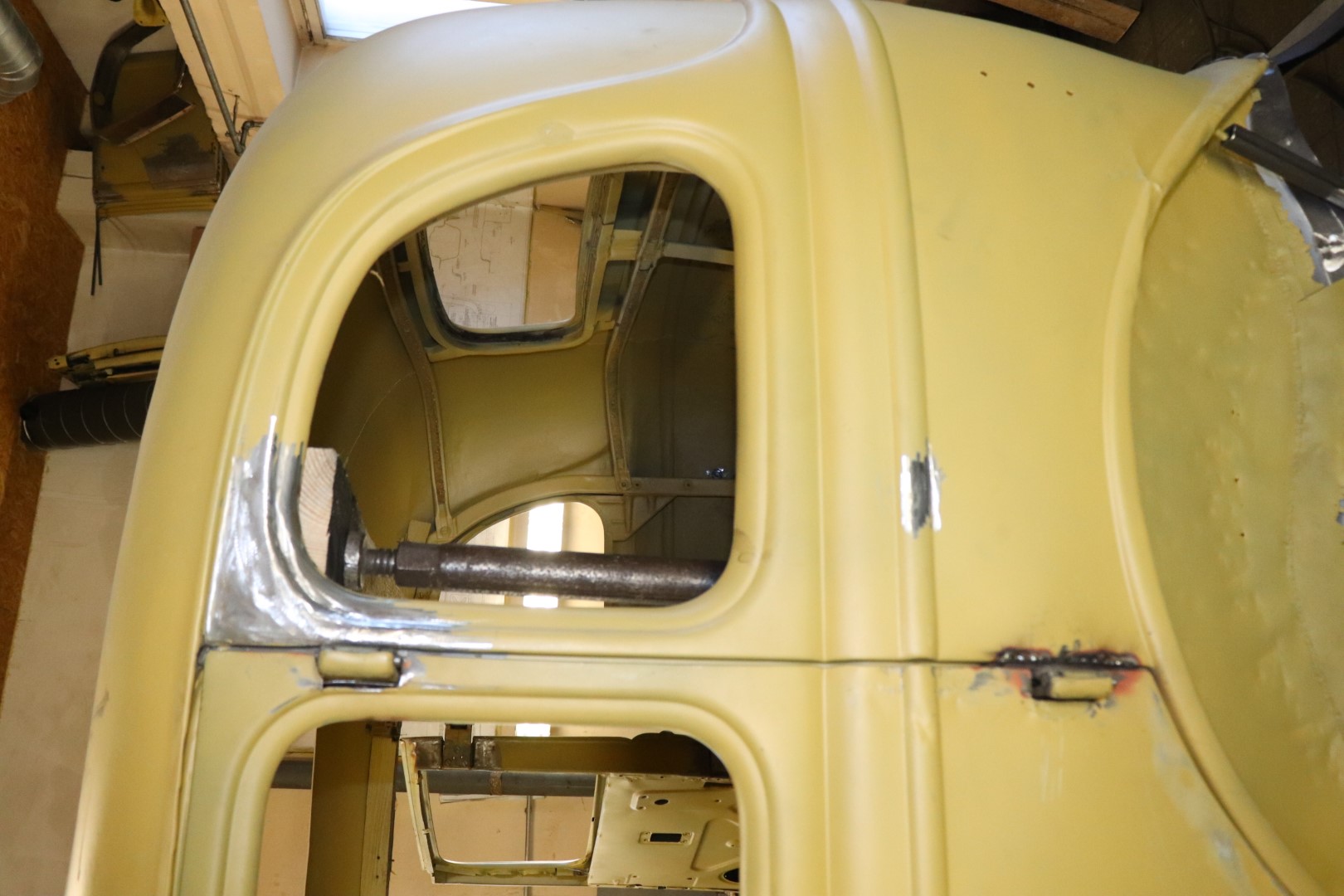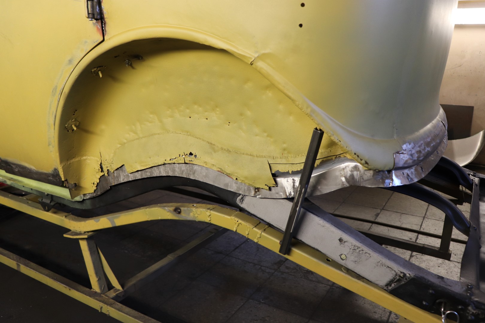 Tasapisi edeneb ka M1 plekitööd. Kuna juppe saada pole, siis tuleb kõik detailid plekist ise välja vormida, mis küllaltki töömahukas ja aeganõudev ettevõtmine. Plekksepal õnnestus mingi ime läbi isegi uste vahed normaalseks saada ja külje triip silmale mitte häirivalt jooksma panna. Teades, milline see pilt algselt oli, siis minu hirmud ei täitunud ja plekksepp sai asja ilusti korda. Lausa uskumatu, kuidas aastatega võib kere ära vajuda ja muidugi aitasid sellele kaasa ka saadud kõksud ette ja taha. Ikkagi 83 aastat vanakesel turjal. Tagumine põll, teisiti ei oska seda nimetada tuleb ka uus teha. Vana lappimine läheb kallimaks. Tagumised sisemised porikoopad said ka valmis aga eks neid ussitanud ja mädanenud kohti veel jagub.