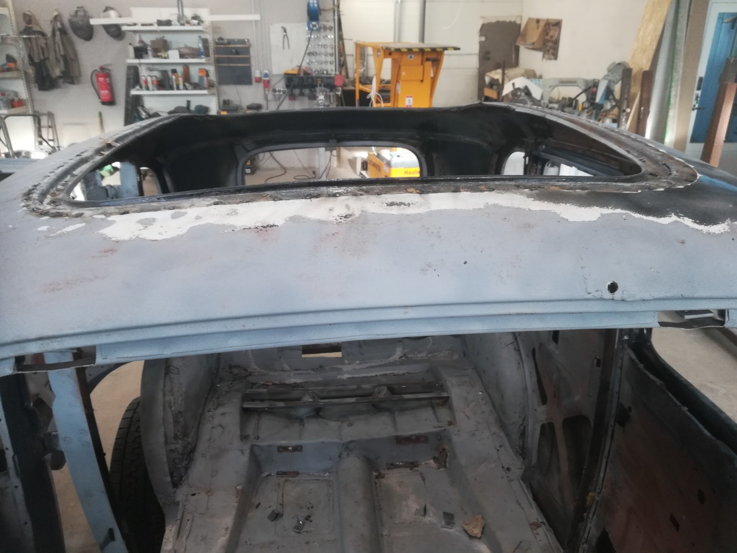 Lõpuks saabus päev, kui tõukasin originaalse M1V8 töösse. Kõigepealt muidugi liivaprits. 80 aastat on muidugi oma jälje jätnud aga auto, mis ostes oli sõidukorras ja pealt küllaltki sile osutus pahtli plönniks. Kohati tuli ikka sm paksusi plönne maha. Present katus oli asendatud plekiga ja imede ime, polnudki keevitatud vaid paarisaja väikse kruviga lihtsalt plaat peale pandud ja siis üle pahteldatud. Alt kõik originaal, kuigi mingit niiskust ikka vahele läinud ja mõned augud sisse roostetanud. Aga mitte midagi hullu. Tagumised sisemised porikoopad suht armetud, vaja uued teha. Põhi 50-50. Kuna kasutusel oli Gaz 24 tagasild, siis oli spetsiaalsed pesad amortide jaoks ehitatud. Kun mul on 3 M1 keret, siis see teeb asja lihtsamaks, sest mõni detail säilinud ühel, mõni teisel. Eks tuleb selle kerega Replikale järele jõuda, siis saab paralleelselt mõlema projektiga edasi minna. Eks surve ka peal, kuna Replika on tellitud Moskva muuseumisse. Muidugi mina kutsun teda Replikaks aga tegelikult on ta ikka originaalne M1. Mudel M1V8 on tänapäevane tinglik kasutus aga 30-ndate lõpus oli salastatuse huvides nad kõik M1-d. Ainult mootori vahe + 15 hj, mis tänapäeval ei ole praktiliselt mingi vahe aga tookord küll. Kuna keevitustööd toimuvad Võrus, CarRestaurationis, siis saab paremini tegemistel silma peal hoida ja muidugi ka tihedamini kommenteerida.