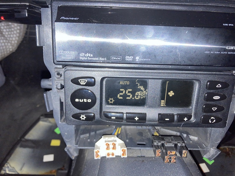 Kuna kasutan nö mask tüüpi automakki siis ei olnud mul võimalik kliima plokil nuppe vajutada sest muusika mängides ekraan varjas seda. Klima ploki viimine allumisse konsooli on üsna tavaline muudatus ning selle asukoht sõltub milline raadio autosse tehasest pandi. Kui 2 din siis kliima all ja kui 1 din siis kliima üleval. Tehasepoolt on kliima ploki juhtmed juba piisavalt pikad nii et nendega alla viimine ei ole keerluine tuleb vaid uus ümbris raam osta mis maksab ca 20 euri ning 10 minutit tööd.