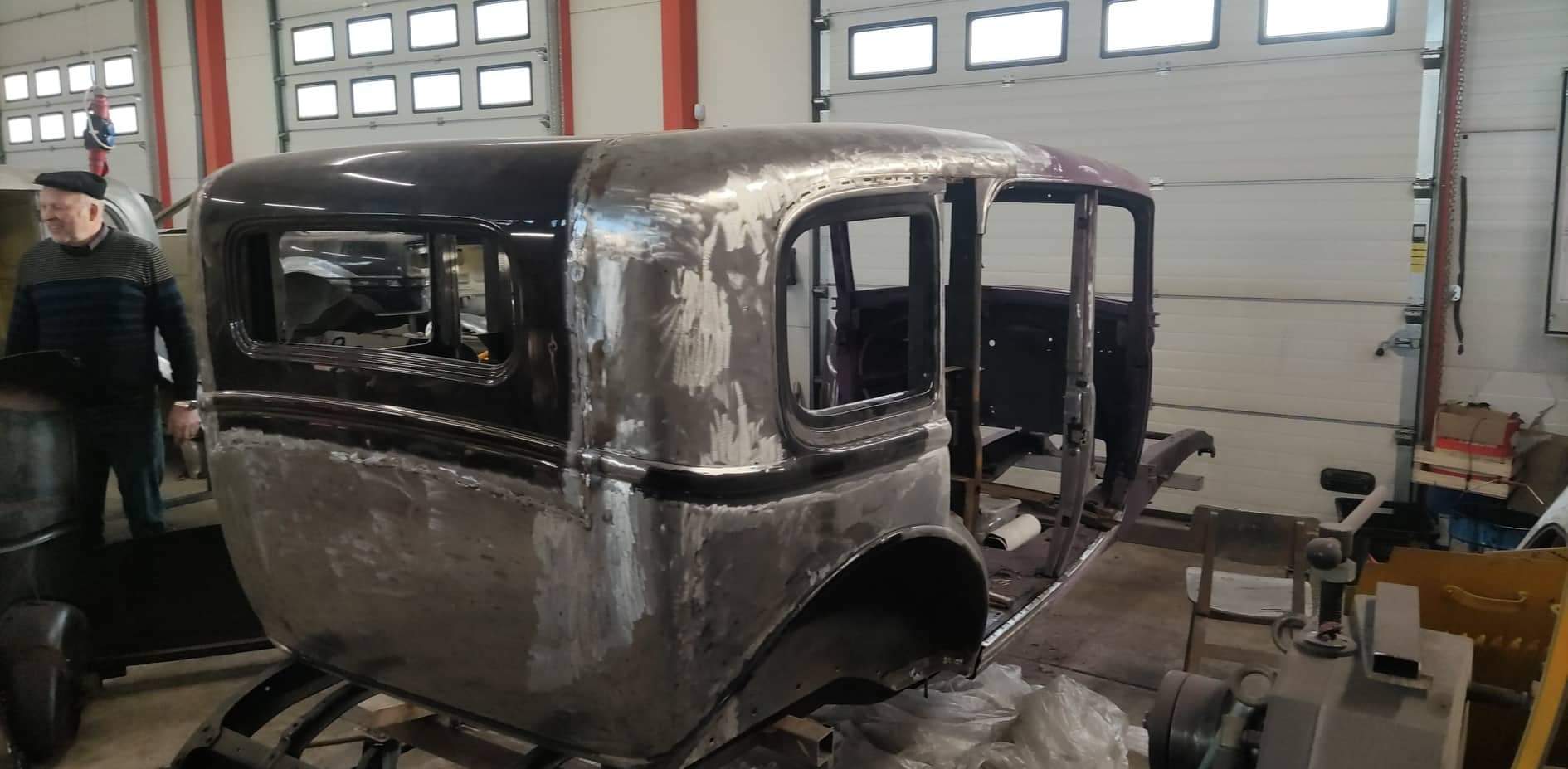 Vaatamata siin foorumis kestvale kriitikale ja kõhklustele, muidugi ka, mida ei saa mainimata jätta, kiiduavaldustele, astub karavan edasi ja kindlasti tuleb meil ka mõningaid plekke vasaratega välja peksta. See tinglik. Me kasutame ikka tänapäevaseid vahendeid. Auto sai siis 40 cm pikem täna. Vahele tuleb ehitada 14 cm-ne riba. Tagumine aken tuleb ka 14 cm pikem ja teistsuguse fassongiga. Ümber tuleb ehitada ka puitraamistikku. Present katuse ava pikeneb ka 40 cm võrra. Selle saab kahe katuse detailidest kokku ehitada. Ühe pildi peale jäi siis "õnnelik" omanik ka.