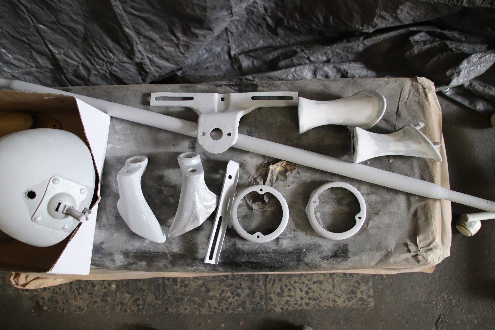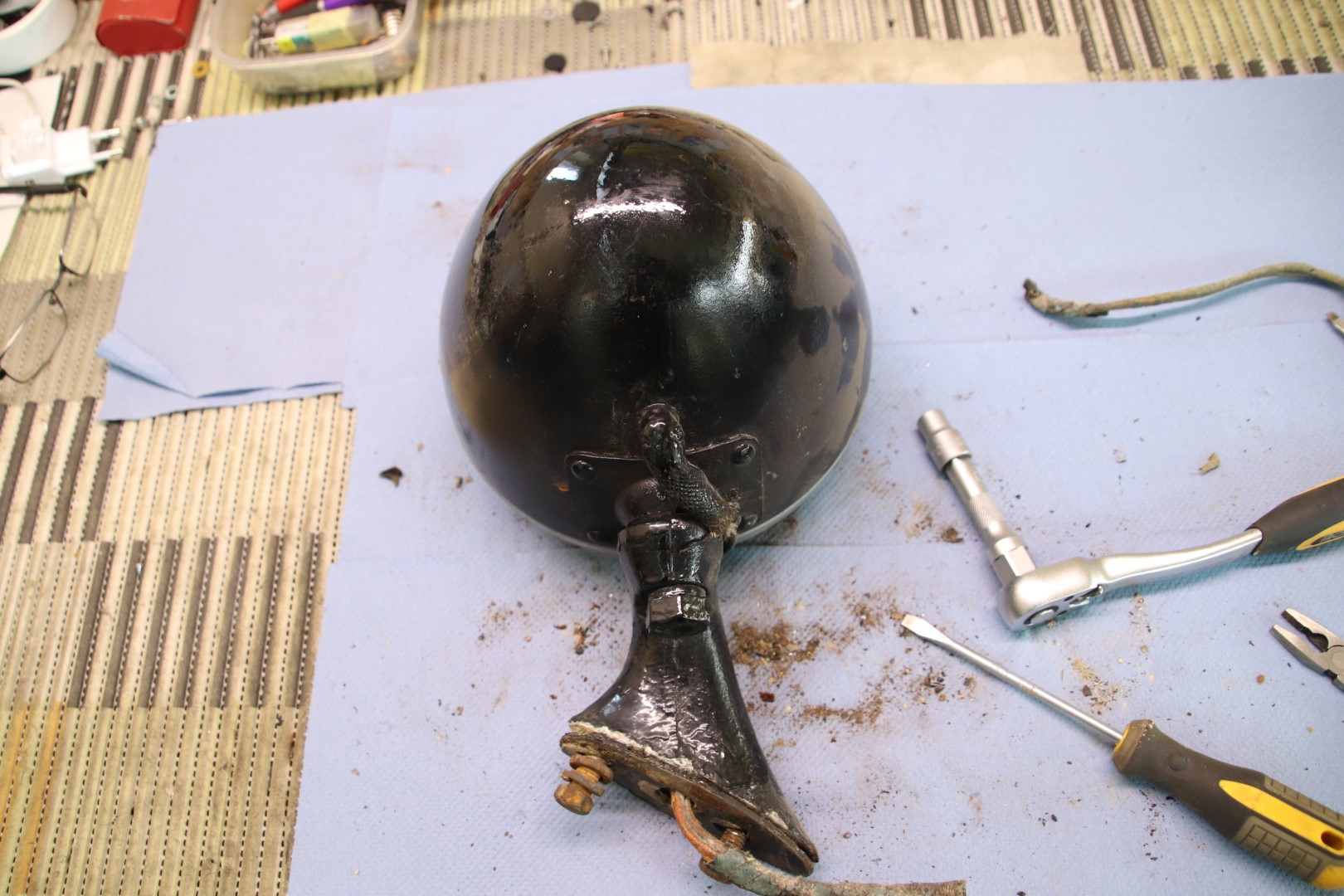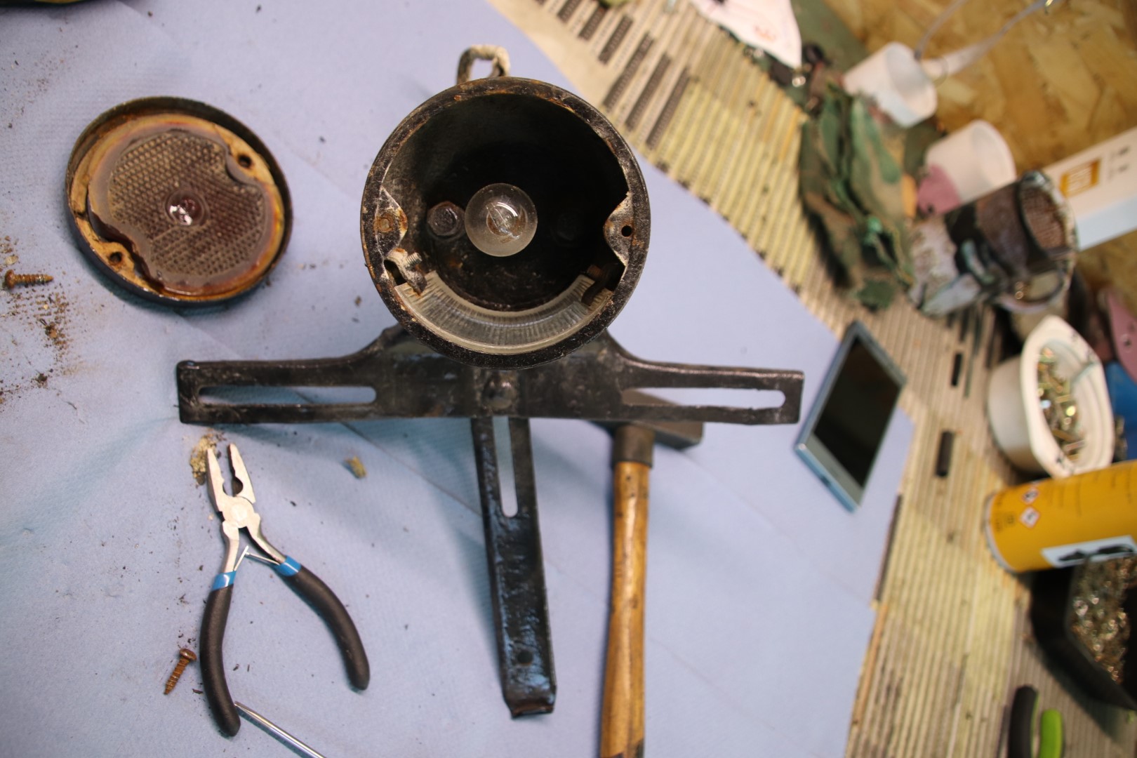 Jätkan sealt, kus eile pooleli jäi. Kuna sellele autole mingeid tagavara juppe saada pole, siis tuleb piirduda olemasolevatega. Eks aegade jooksul on üht teist õnnestunud ka hankida aga kõik see vajab restaureerimist. Ühesõnaga, puhastada, keevitada, tinutada, pahteldada ja värvida või kroomida. Praegu ongi käsil tulede taastamine. Eks pildid räägivad rohkem. Proovin neid kronoloogilises järjestuses panna.