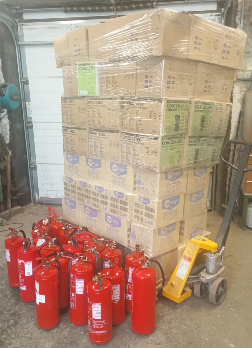 Täna tuleb spordipäev - laekus euroalus koos kahemeetrise hunniku kastidega, millest 22 kasti on niisked salfakad ja 74 kasti erinevad latekskindad. Toodi kohale ka 20 kustutit, millega võiks lähiaja vajadus olla kaetud nii Põhja-Tallinna, kui ka Viimsi chapteri vajadused. Nüüd tuleb kõik see kraam töökojas jalust saada, et saaks taas autosi remontida.
