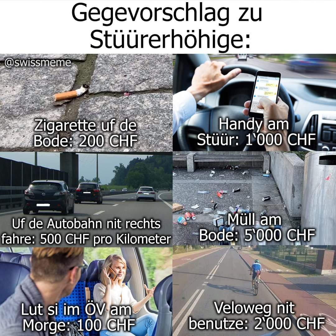 Needsamad Šveitsi trahvinumbrid samade asjade eest ka Eestisse ja nahh seda autoomanikelt kooritavat varamaksu vaja! Mõne nädalaga oleks mitu milli justkui maast leitud pluss liiklus ja tänavad saaksid jobivärdidest puhtamaks.