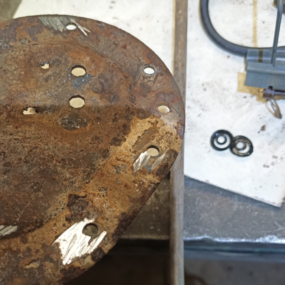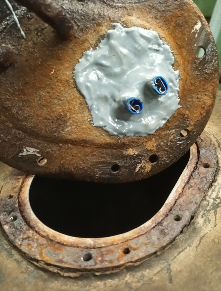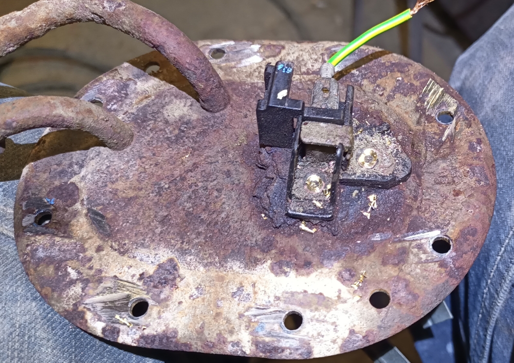 Kuna ei suutnud leida ühtegi mõistliku hinna ja tarneajaga varuosa otsustasin selle ise ette võtta ja ära parandada. No tõesti ei soovi 160+ postikulu maksta ja nädala oodata. Parimad pakkumised olid sinna 200-300 vahele. Loomulikult ei tulnud alustuseks ühtegi ristpeaga polti lahti, mis andurit paagi küljes hoidsid. Isegi mitte löök-kruvikeerajaga. Lõikasin relakaga poltidel pead maha ja sain asja kätte. Selgus, et rooste oli klemmide vahel nii palju kasvanud, et juhtmete läbiviigu kummitihendid olid katki (pildil) ja juhtmed seega massis. Lisaks oli läbiviikude kõrval veel kolm auku juurde tekkinud.