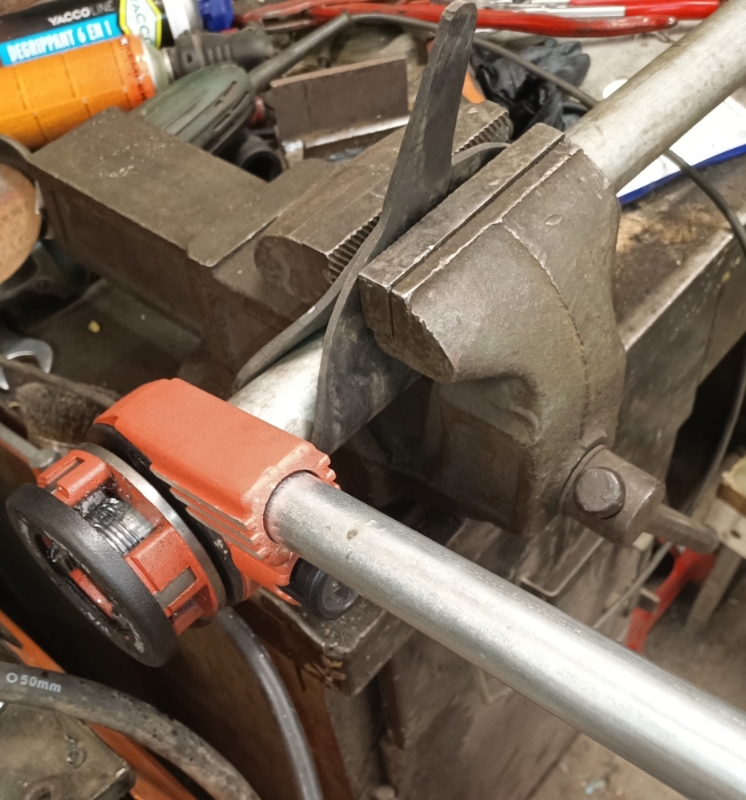 Tegu siis toll ja veerandise toruga, mida sai edukalt keermestada ksf. Edvardilt laenatud keermestajaga u. Poole tiiru jagu korraga, siis pidi tagasi keerama. Määrdeks läks tavaline cut&drill aerosool lõikeõli.