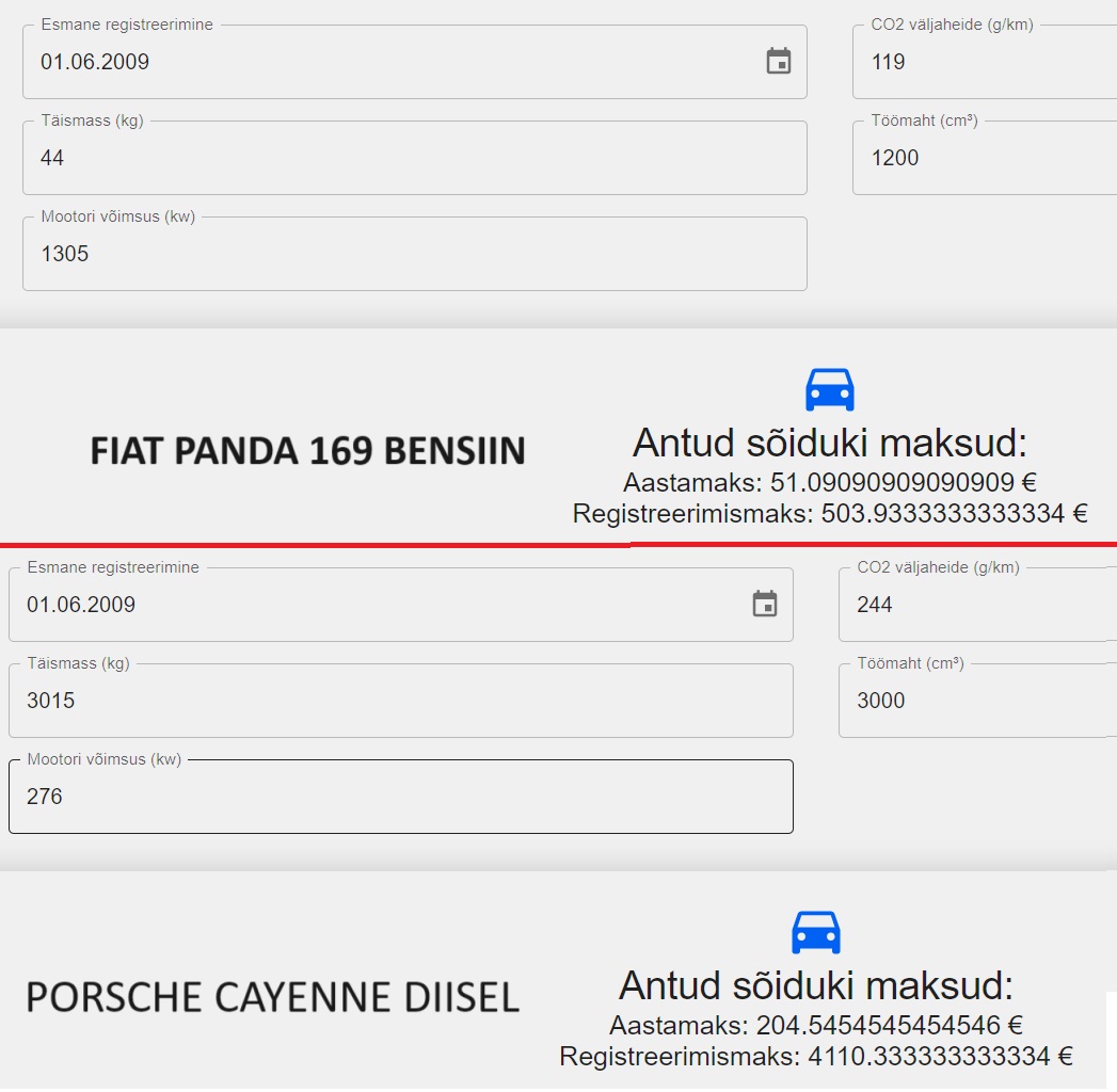 Maailmapäästja Fiat Panda aastamaks saab olema Eestis 200% Saksamaa maksust (e. 2x kallim), samas kui maailmatapja Porsche Cayenne aastamaks Eestis on kõigest 38% Saksamaa aastamaksust (e. 2,6x odavam). Eks see näitab, et reaalselt on rohepöörde ja selle eesmärkide soodustamisest meie automaks ikka väga kaugel ning peamine eesmärk on siiski vara maksustamine.