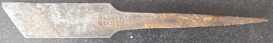 Puidu treimise peitel kirjaga: newbould caststeel, ees on aimatav 7/8 ja taga poolel w____nted tiiviku kuju sees.