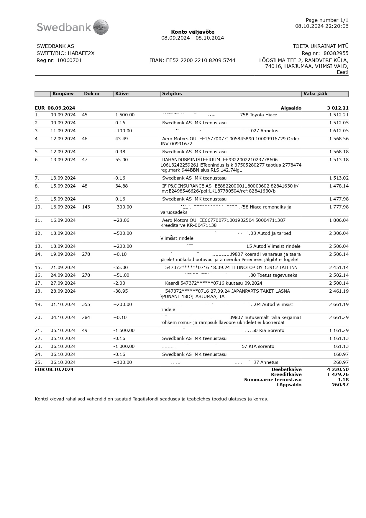 Eelmise kuu ja selle kuu alguse väljavõte ka.