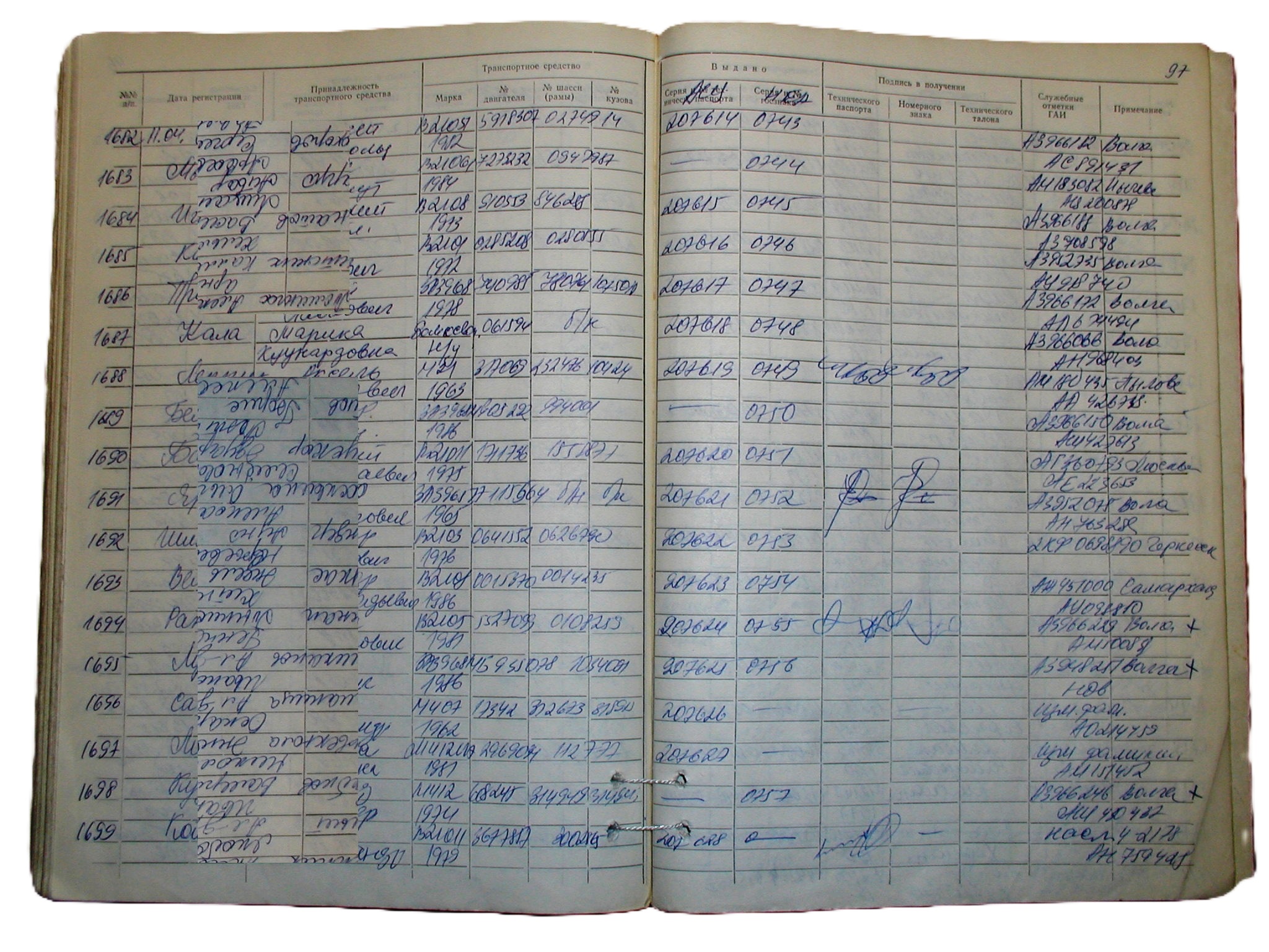 1986. aasta registriraamatu pilt - ülejäänud kanded on NL päritolu sõidukitest