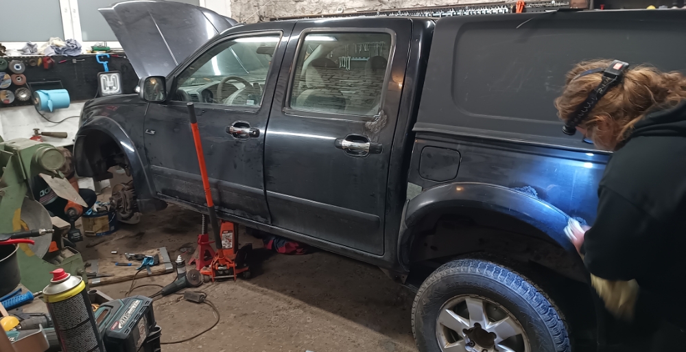 Enne jõule viimati tähelepanu saanud I-suzu sai juba eile töökotta sooja, et täna saaks neli meest seda remontida. Kõik mehaanikud peale kaamera hoidiku on tähelepanelikule lugejale ka pildilt leitavad
