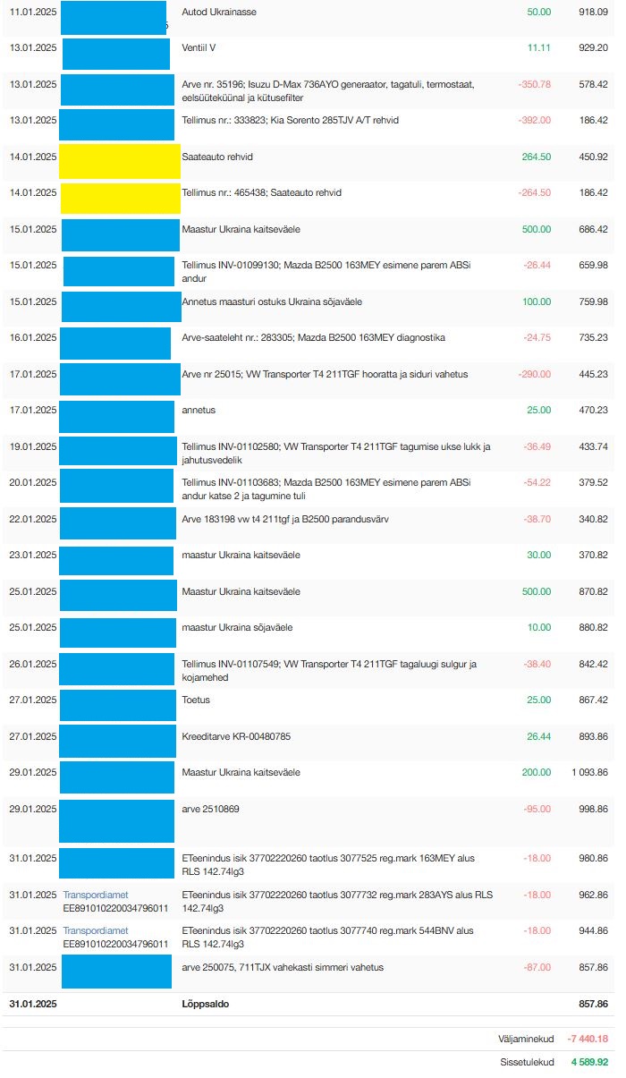 Siin on jaanuari Põhja-Tallinn abiüksuse kontoväljavõte.