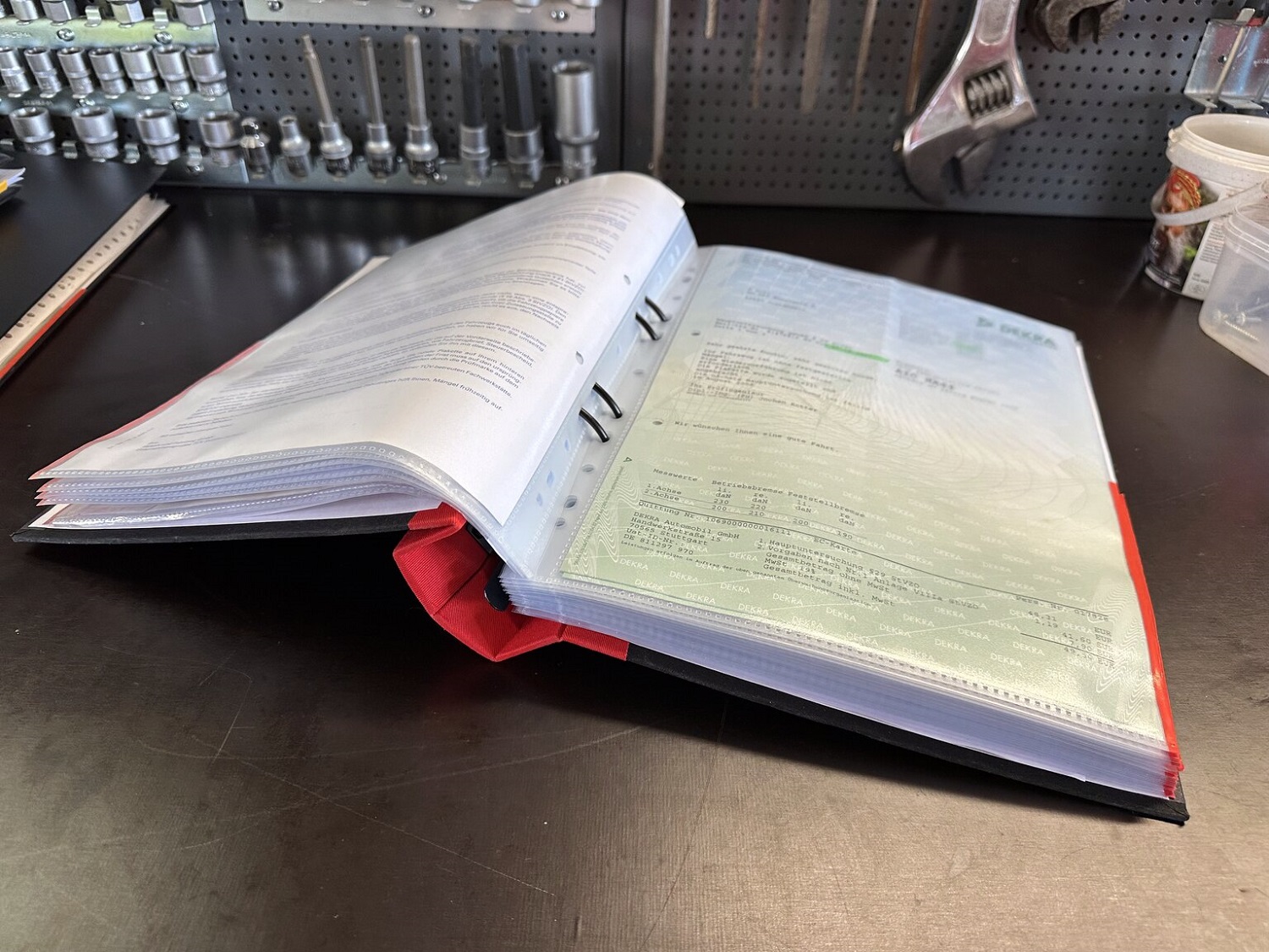 Punasest kaustast leaib autode ostu-müügi lepingud (millest on vist ainult üks puudu ning see "vist" on ka küsimärgiga), dokumendid tehniliste ülevaatuste kohta, dokumendid ümberehituste kohta mis on kontrollitud ja heaks kiidetud, dokumendid regulaarsete hoolduste ja remontide kohta, dokumendid lisavarustuse paigaldamiste ning tehtud värviparanduste kohta. Ei hakka kõike üksipulgi välja tooma, kuid väga hea on sellist ajalugu omada ning lugeda.